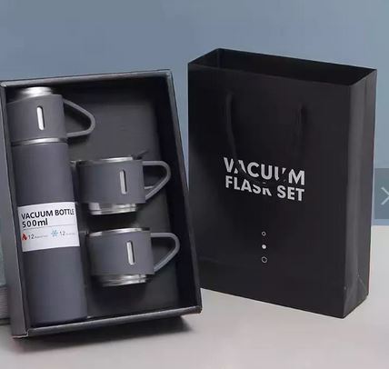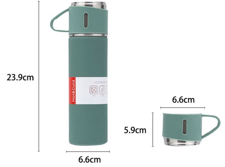 این فلاسک سه کاپ با گنجایش 500 میلی لیتر، به همراه 3 کاپ بسیار زیبا و خاص در بسته بندی شیک به شما تحویل داده میشود. مناسب هدیه به دوستان و عزیزانتان. ارتفاع فلاسک 23.5 و قطر فلاسک 6.5 سانتی متر ، درب پیچی و ضد نشت جنس: فولاد ضد زنگ ، ساختار درونی استیل ضد زنگ ، ضدخش و مقاوم ، وزن مناسب و طراحی بسته بندی و فلاسک بسیار منحصر به فرد است. مدت زمان نگهداری بعد از 6 ساعت ، 70 درجه سانتی گراد .